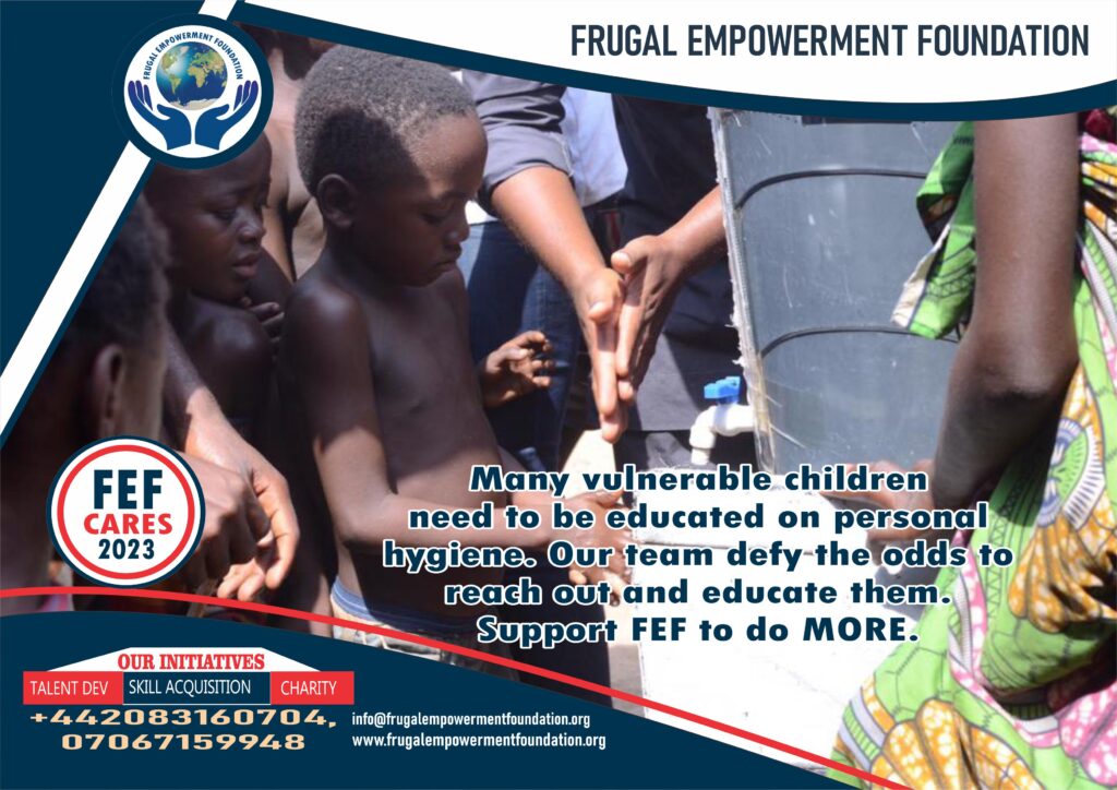 Many vulnerable childrenneed to be educated on personalhygiene. Our team defy the odds toreach out and educate them. The Frugal