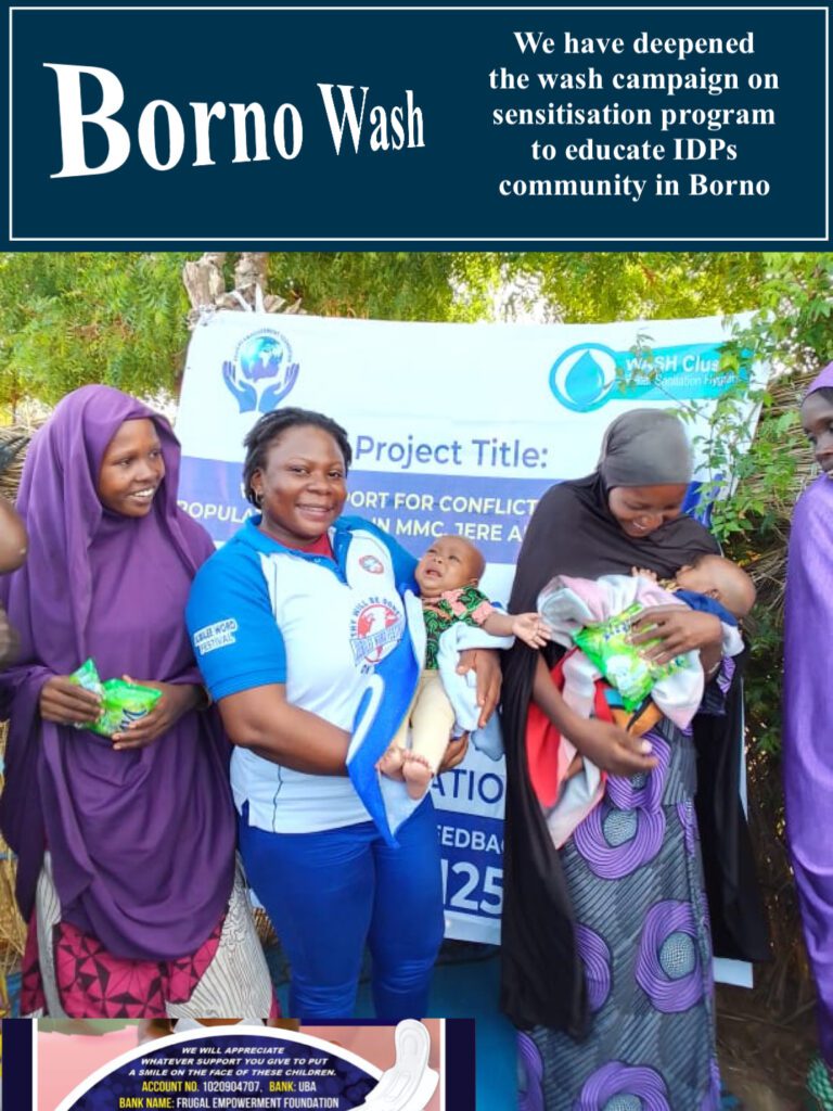 FRUGAL and its implementing partners will also propose toestablish WASH committee at the IDP camps within the target location which does not have WASH committee and strengthened the existing ones so as to increase the level of the use of safe water, promote good personal, sanitary and menstrualhygiene with the targeted camps within MMC, Jere and Konduga.