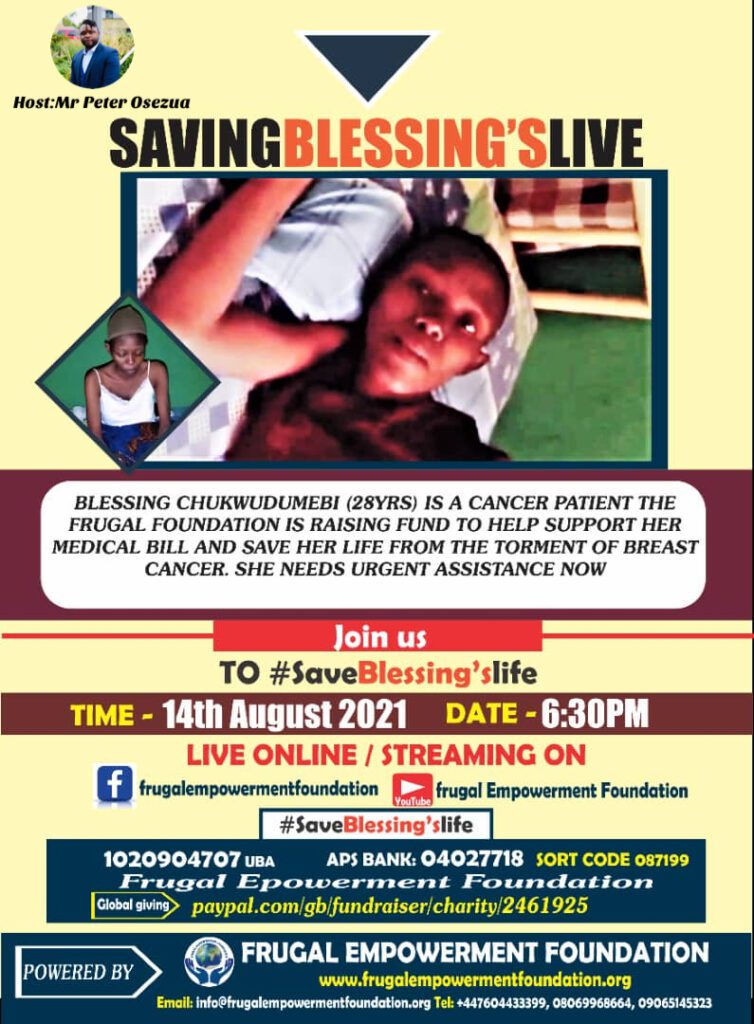 Over a year now, 28years old Blessing Chukwudumebi has been diagnosed of breast cancer and has been battling with it.