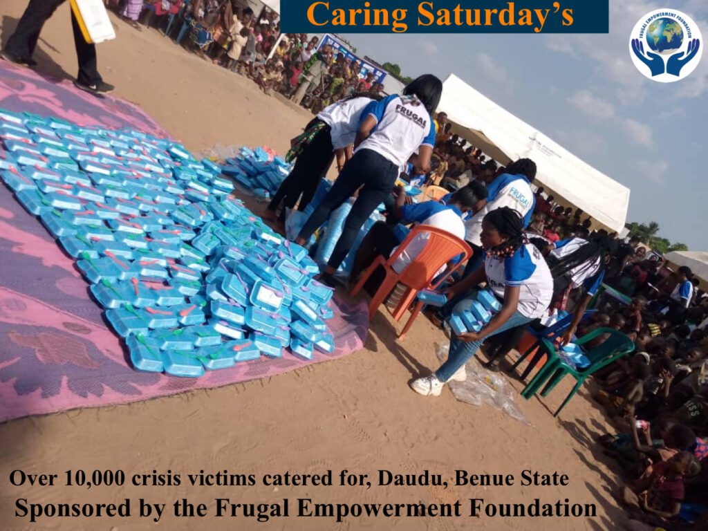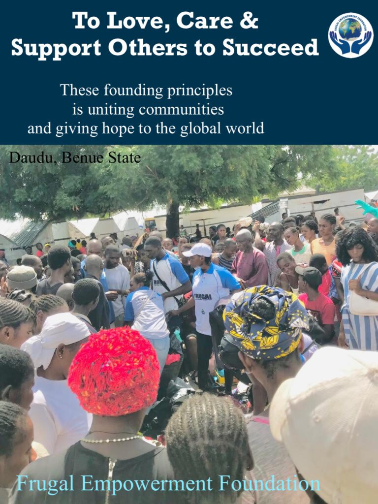 DAUDU, BENUE STATE – In a heartwarming celebration of compassion and community, the Frugal Empowerment Foundation (FEF) held a special Caring Saturday event in honor of Mr. Frugal’s birthday on April 20th. The event, aimed at impacting the lives of crisis victims, was a resounding success as FEF members from various Nigerian states, along with artists, dancers, and volunteers, converged at the Daudu IDP camp in Benue State.