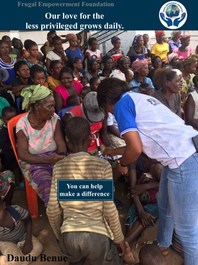 Today, over 2000 IPDs at Federal housing IDP camp makurdi live touched by Frugal Empowerment Foundation as our efforts to support the less privileged grows. You can help me a difference at Give As You Live