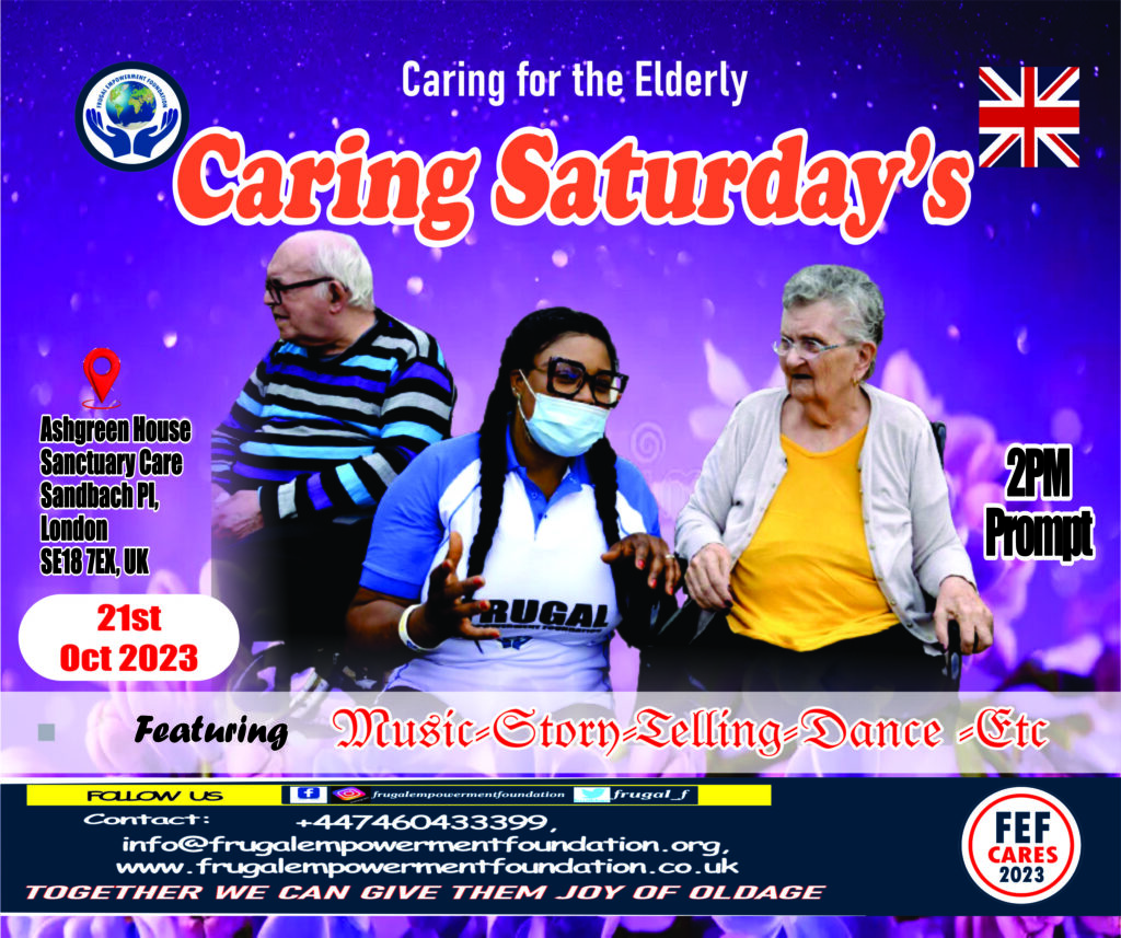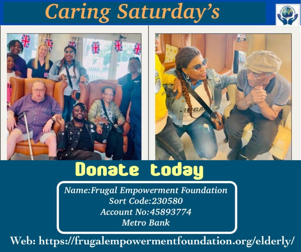 This Year 2025, Our project is centred on caring for the Elderly to relief their isolation and to provide them with social wellbeing through music, story telling, comedy using the Frugal Foundation Caring Saturday’s charity initiative. Please, Join us support the Elderly UK this month at