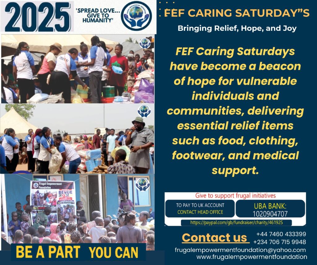 The Frugal Empowerment Foundation (FEF) is setting new records with its “Caring Saturday’s” events, designed to provide hi unprecedented support to vulnerable communities across Nigeria. As FEF continues to stir these impactful initiatives, it calls on donors, volunteers, and partners to join in the effort to bring hope and relief to those in need.