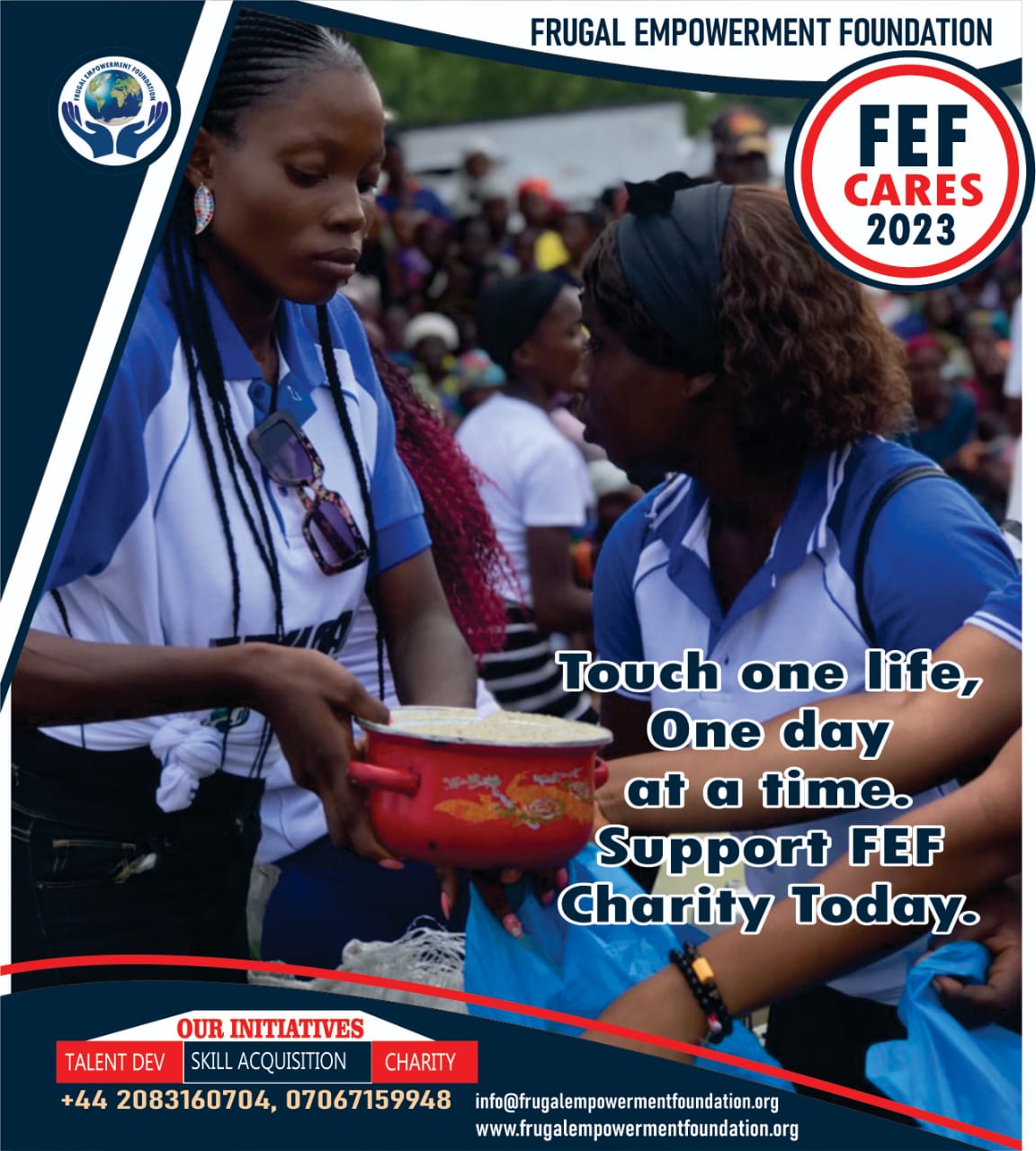 The Frugal Empowerment Foundation (FEF) is rallying communities across Edo, Lagos, Jos, Yola, Abuja, Benue, and beyond to join hands in support of their ambitious Caring Saturdays Charity programs slated for the 23rd of December 2023. Under the visionary leadership of Mr. Frugal, the foundation is gearing up to touch the lives of over 300,000 … Read more