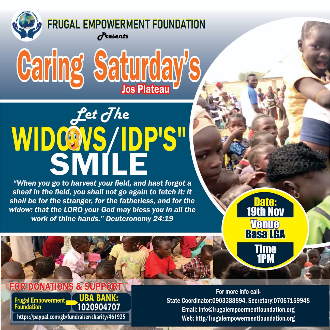 It’s another season to make impacts as the wave of our charity initiative makes another presence in Jos Plateau State Nigeria through our signature program, Caring Saturday’s. This edition themed ‘Let the Widows & IDPs Smile’ is another opportunity for us at Frugal Empowerment to reach out to the vulnerable and widows in the Jos … Read more