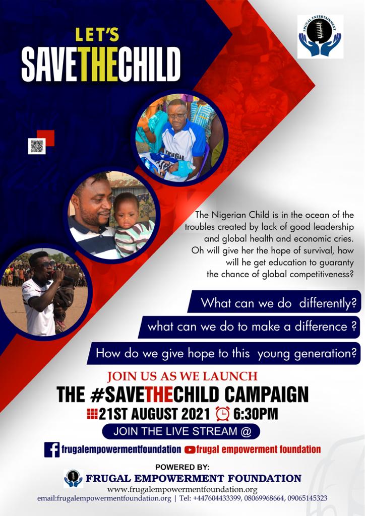 I have worked with Frugal Save A child’s life, and can understand how much they put to save a child daily, I have witnessed children whose lives were endangered, and are now saved, they grow with confidence that at least, someone cares for them. But many are still dying and more will die if the desirable support is not coming from someone like you who do not want to see children die. This is why we are asking for your support, your help, whatever it is, no matter how big or small, will go a long way saving these innocent children’s lives . To enable you identify this campaign, we named it, as you may wish #savethechild . With savethechild campaign we bring these victimized children under one umbrella and yearn for your support to save their lives.