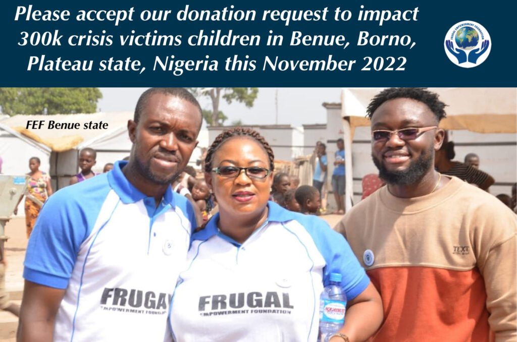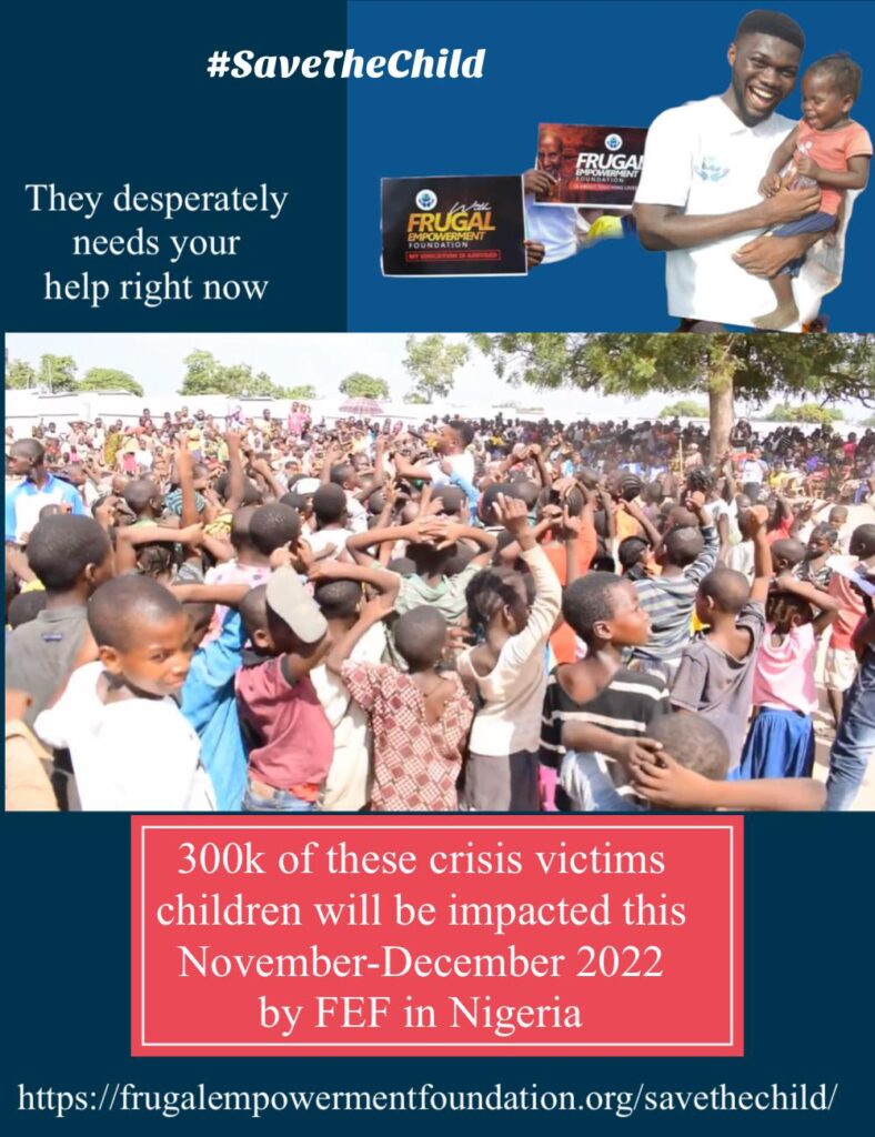 Join Frugal (Mr Peter Osezua) to raise money live on zoom this December 2023, to support 300,000 crisis victims children in Nigeria this November 2023.