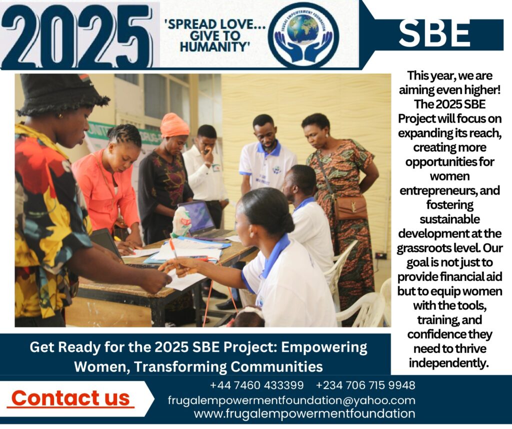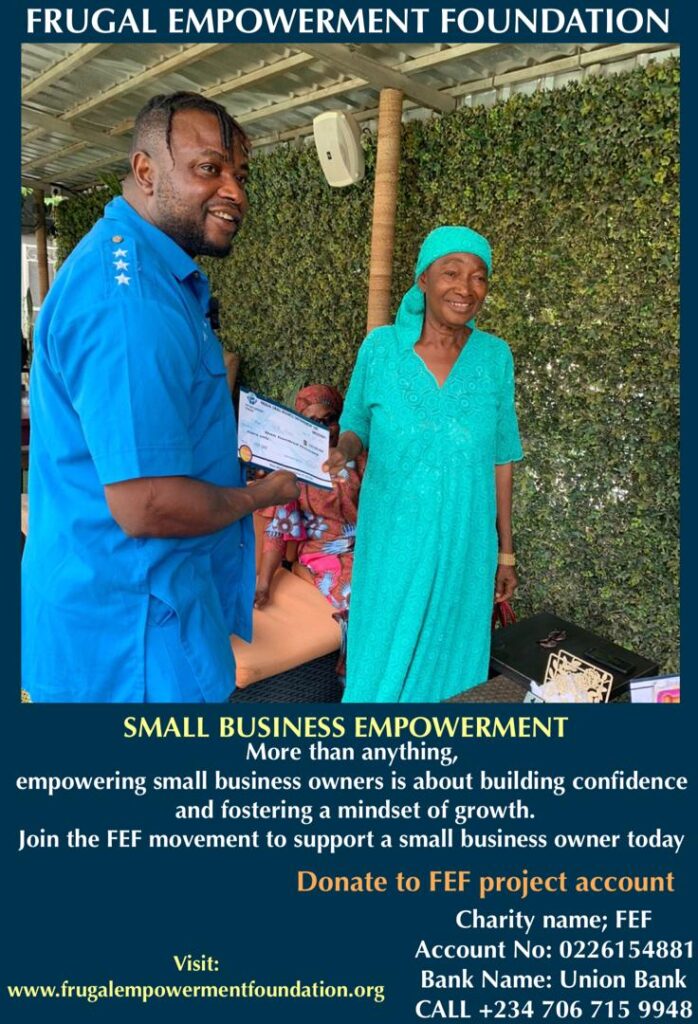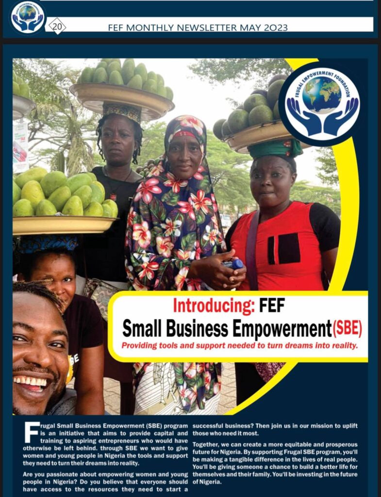 The Frugal Empowerment Foundation (FEF) Small Business Empowerment (SBE) Programme, a charitable initiative aimed at empowering women and young people in Nigeria through grants and training. This programme addresses critical barriers such as limited funding, business knowledge, and access to resources, helping aspiring entrepreneurs establish or expand their small businesses.