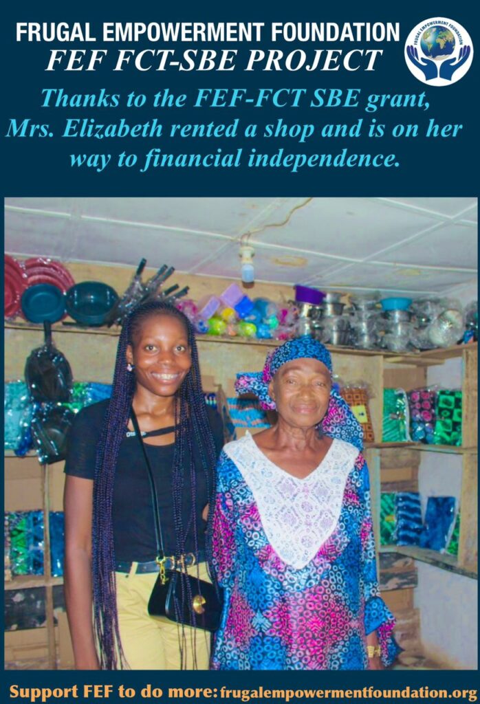 Thanks to the FEF-FCT SBE grant, Mrs. Elizabeth rented a shop and is on her way to financial independence.