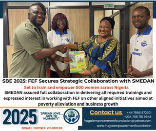 Great news from the Frugal Empowerment Foundation! As part of the 2025 Small Business Empowerment (SBE) Women Project, **FEF has officially concluded a collaboration agreement with SMEDAN (Small and Medium Enterprises Development Agency of Nigeria) to train and empower 500 women across Nigeria!