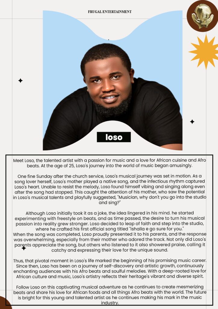 “This year, we’re taking things to greater heights,” Loso shared, hinting at exciting projects and collaborations in the pipeline. As one of Frugal Entertainment’s standout artists, Loso’s commitment to his craft and his fans remains stronger than ever.